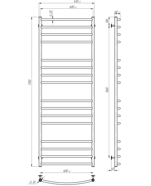 Електрична сушарка для рушників Deffi Класик Еліт П16 600х1700 ліве підключення чорний C.KE.170.60.15.E.B.L.5