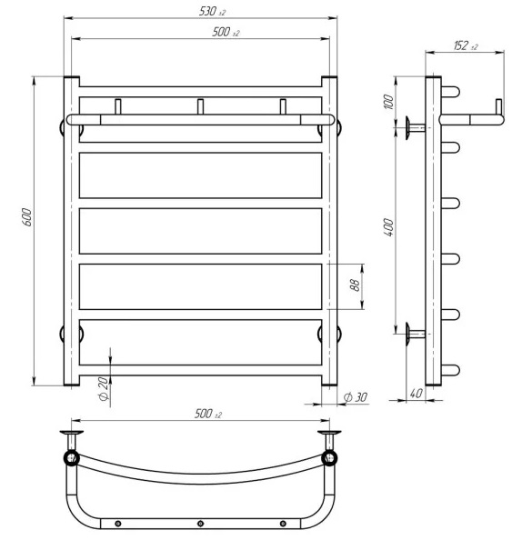 Електрична сушарка для рушників Deffi Класик N П6 500х600 ліве підключення WD03 білий C.KN.60.50.6.E.W.L.1