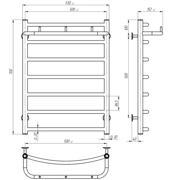 Електрична сушарка для рушників Deffi Класик N П7 500х700 ліве підключення хром C.KN.70.50.7.E.C.L.5