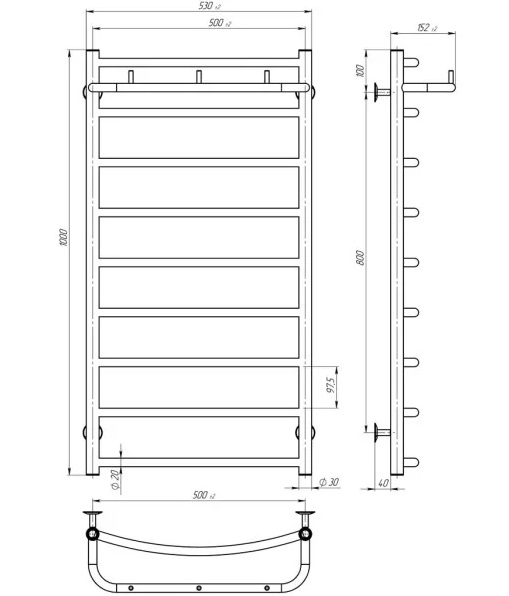 Електрична сушарка для рушників Deffi Класик N П9 500х1000 ліве підключення JD03 чорний C.KN.100.50.9.E.B.L.1