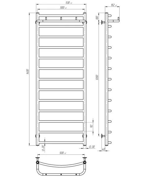 Електрична сушарка для рушників Deffi Класик N П13 500х1400 праве підключення хром C.KN.140.50.13.E.C.R.5