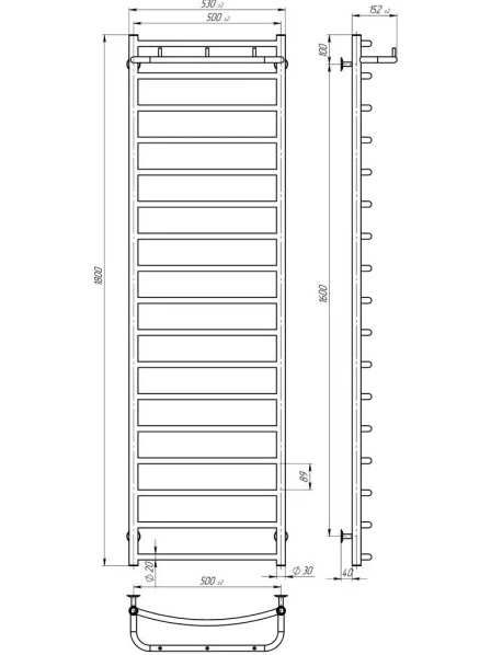 Електрична сушарка для рушників Deffi Класик N П17 500х1800 праве підключення WD03 білий C.KN.180.50.17.E.W.R.1