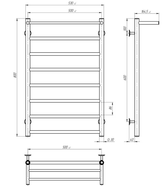 Електрична сушарка для рушників Deffi Терма П8 500х800 ліве підключення білий C.TE.80.50.8.E.W.L.5