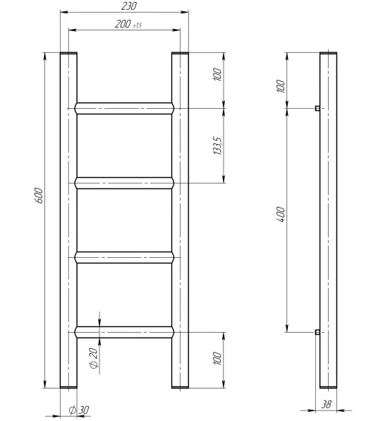 Електрична сушарка для рушників Deffi Оріон П4 200х600 ліве підключення чорний C.OR.60.20.4.E.B.L.5
