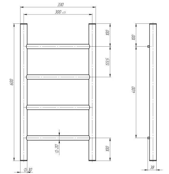 Електрична сушарка для рушників Deffi Оріон П4 300х600 праве підключення JD03 хром C.OR.60.30.4.E.C.R.1