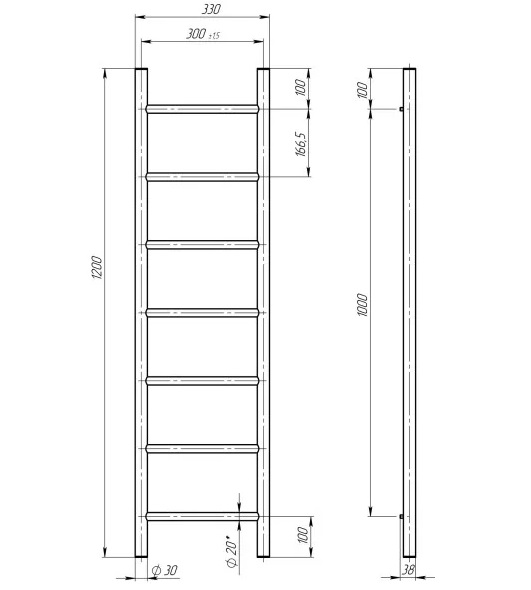 Електрична сушарка для рушників Deffi Оріон П7 300х1200 праве підключення JD03 чорний C.OR.120.30.7.E.B.R.1