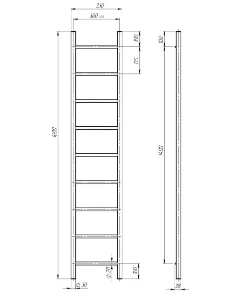 Електрична сушарка для рушників Deffi Оріон П9 300х1600 праве підключення WD03 білий C.OR.160.30.9.E.W.R.3