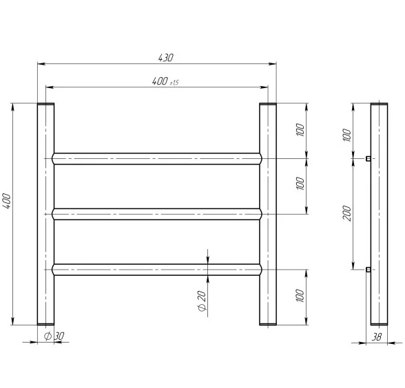 Електрична сушарка для рушників Deffi Оріон П3 400х400 праве підключення чорний C.OR.40.40.3.E.B.R.5
