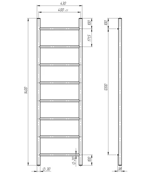 Електрична сушарка для рушників Deffi Оріон П8 400х1400 праве підключення хром C.OR.140.40.8.E.C.R.5
