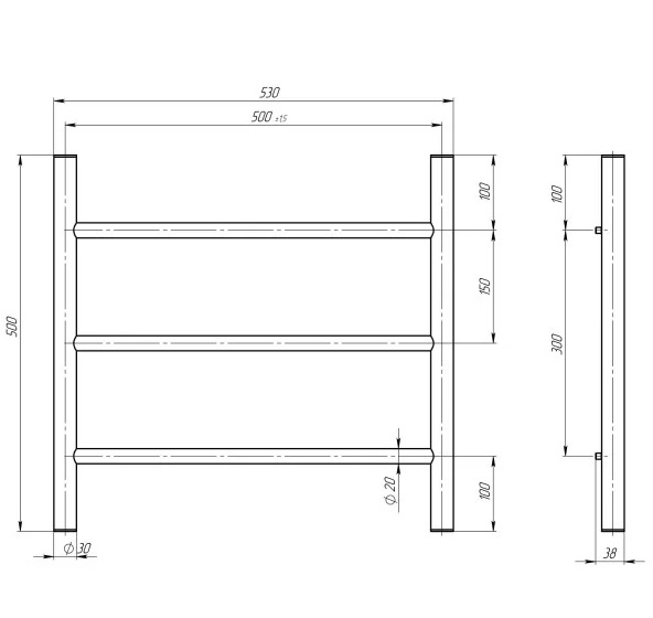 Електрична сушарка для рушників Deffi Оріон П3 500х500 ліве підключення білий C.OR.50.50.3.E.W.L.5