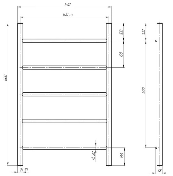 Електрична сушарка для рушників Deffi Оріон П5 500х800 ліве підключення білий C.OR.80.50.5.E.W.L.5