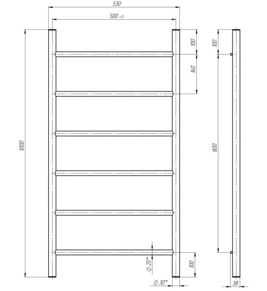 Електрична сушарка для рушників Deffi Оріон П6 500х1000 ліве підключення білий C.OR.100.50.6.E.W.L.5