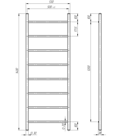 Електрична сушарка для рушників Deffi Оріон П8 500х1400 правильне підключення чорний C.OR.140.50.8.E.B.R.5