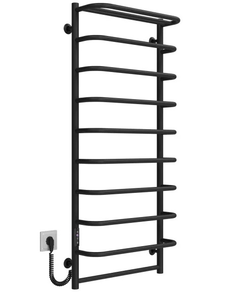 Електрична сушарка для рушників Deffi Стандарт із полицею П10 500х1200 ліве підключення JD03 чорний C.SP.120.50.10.E.B.L.1