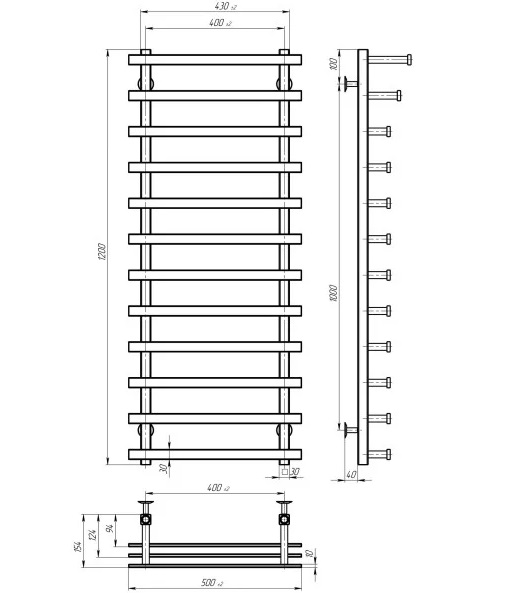 Електрична сушарка для рушників Deffi Breeze П12 400x1200 ліве підключення JD04 хром A.BZ.120.40.12.E.C.L.2