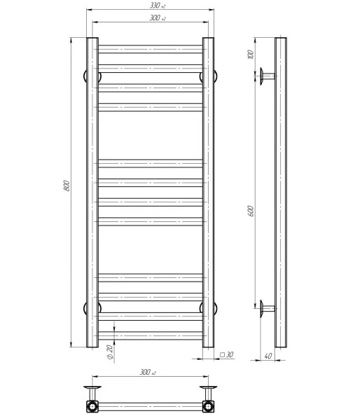 Електрична сушарка для рушників Deffi Lima П12 300х800 ліве підключення JD04 чорний A.LI.80.30.12.E.B.L.2