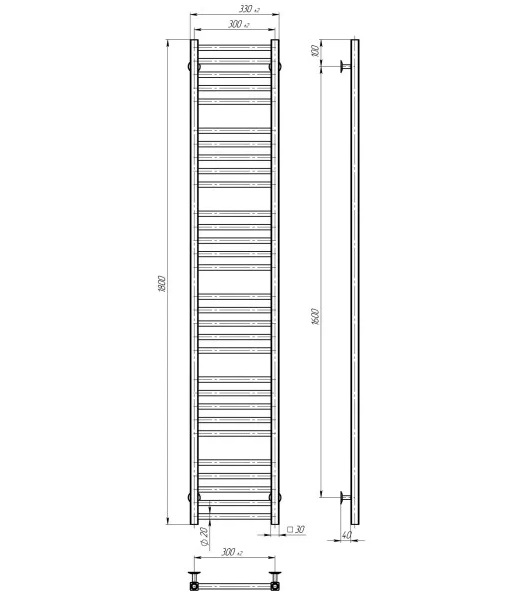 Електрична сушарка для рушників Deffi Lima П30 300х1800 праве підключення JD04 хром A.LI.180.30.30.E.C.R.2