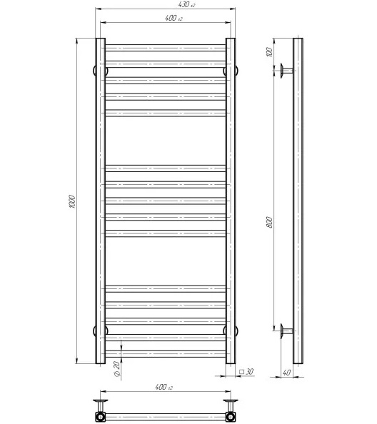 Електрична сушарка для рушників Deffi Lima П15 400х1000 праве підключення JD04 хром A.LI.100.40.15.E.C.R.2
