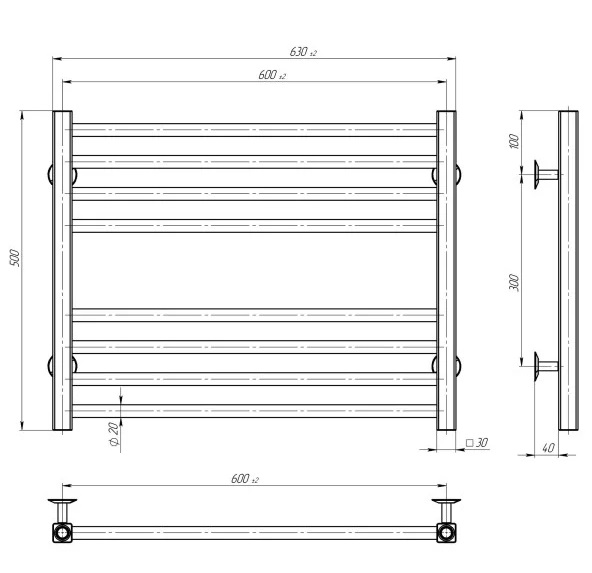 Електрична сушарка для рушників Deffi Lima П8 600х500 праве підключення JD04 чорний A.LI.50.60.8.E.B.R.2