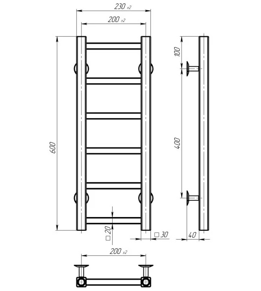 Електрична сушарка для рушників Deffi Forest П6 200х600 праве підключення JD04 чорний A.FR.60.20.6.E.B.R.2