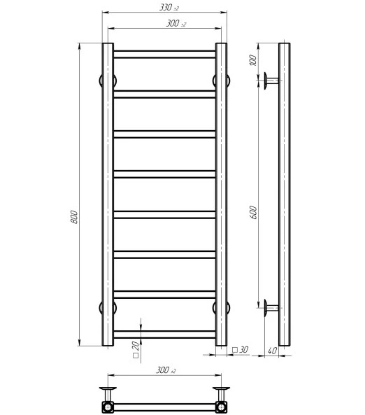 Електрична сушарка для рушників Deffi Forest П8 300х800 ліве підключення JD04 хром A.FR.80.30.8.E.C.L.2