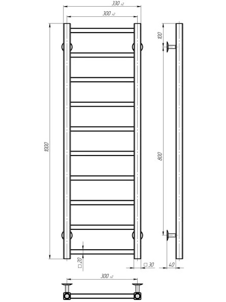 Електрична сушарка для рушників Deffi Forest П8 300х800 праве підключення білий A.FR.80.30.8.E.W.R.4