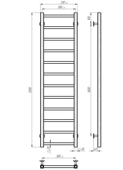 Електрична сушарка для рушників Deffi Forest П12 300х1200 ліве підключення JD04 чорний A.FR.120.30.12.E.B.L.2