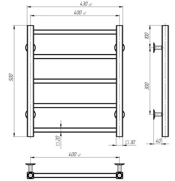 Електрична сушарка для рушників Deffi Forest П5 400х500 праве підключення JD04 чорний A.FR.50.40.5.E.B.R.2