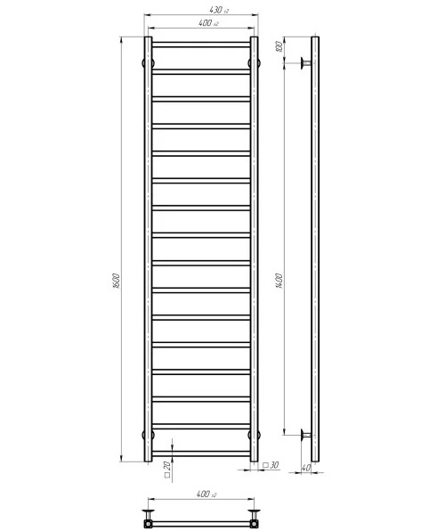 Електрична сушарка для рушників Deffi Forest П16 400х1600 праве підключення JD04 чорний A.FR.160.40.16.E.B.R.2