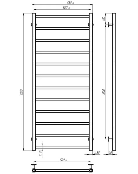 Електрична сушарка для рушників Deffi Forest П12 500х1200 ліве підключення JD04 чорний A.FR.120.50.12.E.B.L.2