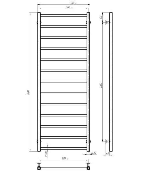 Електрична сушарка для рушників Deffi Forest П13 500х1400 ліве підключення JD04 чорний A.FR.140.50.13.E.B.L.2