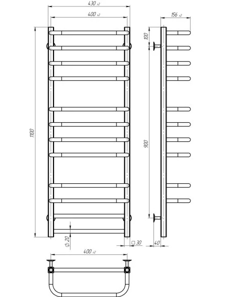 Електрична сушарка для рушників Deffi Lux П12 400х1100 праве підключення JD04 чорний A.LU.110.40.12.E.B.R.2