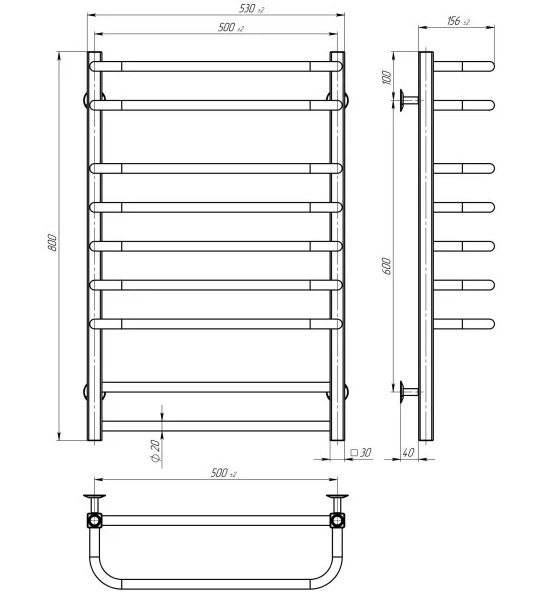 Електрична сушарка для рушників Deffi Lux П9 500х800 ліве підключення JD04 чорний A.LU.80.50.9.E.B.L.2