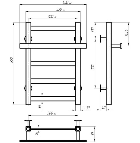 Електрична сушарка для рушників Deffi Nicolе П5 300х500 праве підключення WD04 білий A.NI.50.30.5.E.W.R.4