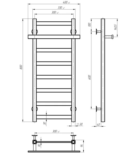 Електрична сушарка для рушників Deffi Nicole П8 300х800 ліве підключення WD04 білий A.NI.80.30.8.E.W.L.4