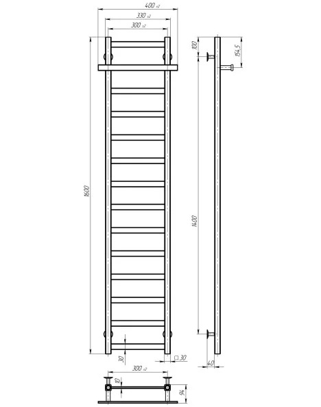 Електрична сушарка для рушників Deffi Nicolе П14 300х1600 ліве підключення WD04 білий A.NI.160.30.14.E.W.L.4