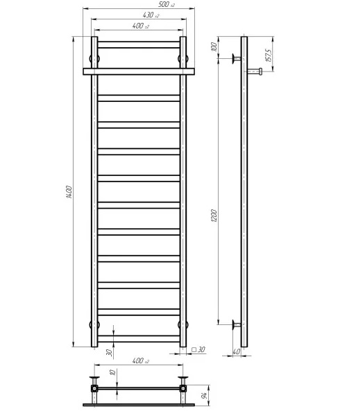 Електрична сушарка для рушників Deffi Nicole П12 400х1400 ліве підключення WD04 білий A.NI.140.40.12.E.W.L.4