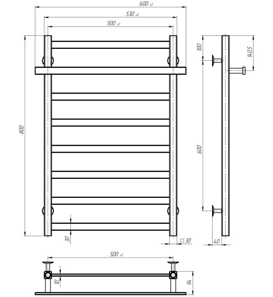 Електрична сушарка для рушників Deffi Nicole П8 500х800 ліве підключення JD04 хром A.NI.80.50.8.E.C.L.2