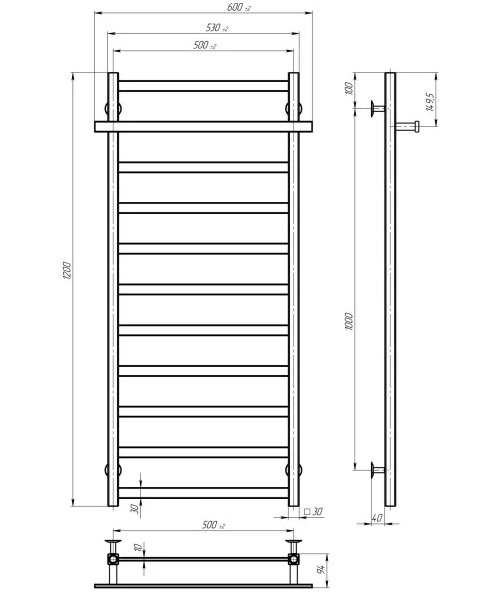 Електрична сушарка для рушників Deffi Nicolе П11 500х1200 праве підключення WD04 білий A.NI.120.50.11.E.W.R.4
