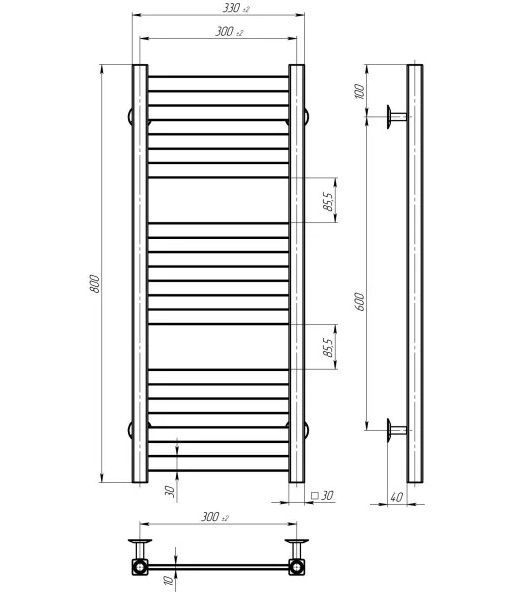 Електрична сушарка для рушників Deffi Magnus П12 300х800 ліве підключення JD04 хром A.MA.80.30.12.E.C.L.2