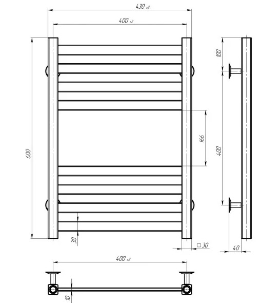 Електрична сушарка для рушників Deffi Magnus П8 400х600 праве підключення JD04 хром A.MA.60.40.8.E.C.R.2