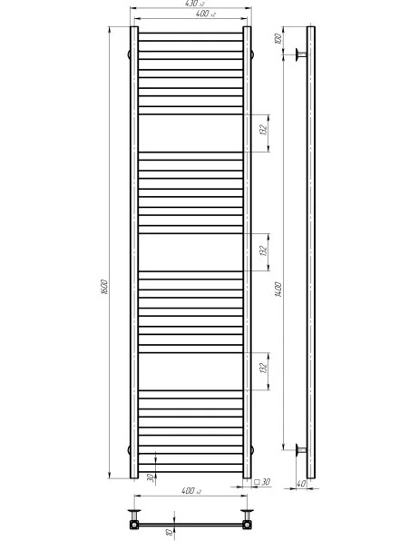 Електрична сушарка для рушників Deffi Magnus П20 400х1600 ліве підключення JD04 хром A.MA.160.40.20.E.C.L.2