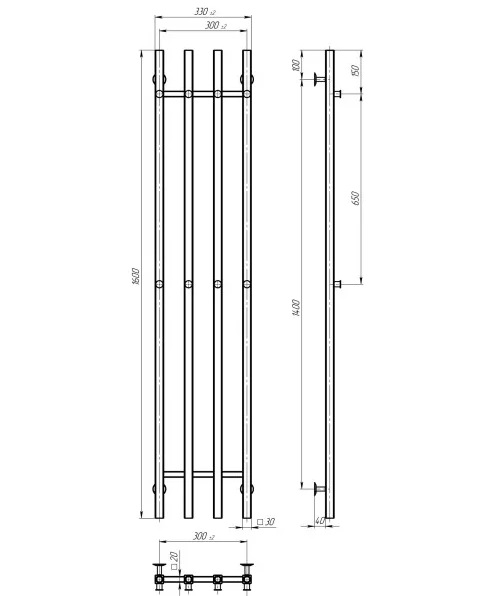 Електрична сушарка для рушників Deffi Split П4 300х1600 праве підключення WD04 білий A.SP.160.30.4.E.W.R.4