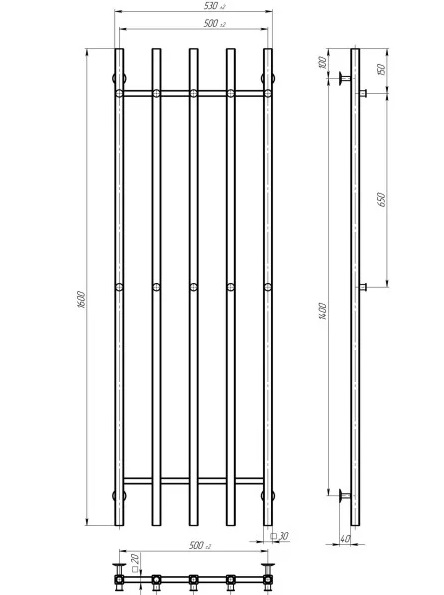 Електрична сушарка для рушників Deffi Split П5 500х1600 ліве підключення JD04 чорний A.SP.160.50.5.E.B.L.2