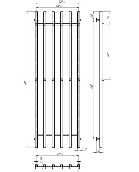 Електрична сушарка для рушників Deffi Split П6 500х1600 ліве підключення JD04 хром A.SP.160.50.6.E.C.L.2