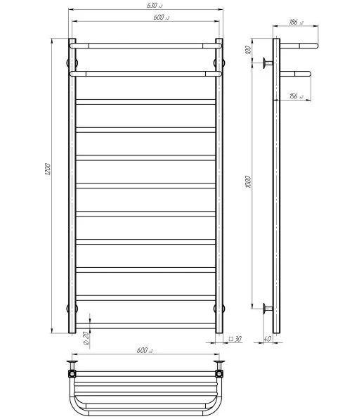 Електрична сушарка для рушників Deffi Lux Hotel П11 600х1200 праве підключення WD04 білий A.LH.120.60.11.E.W.R.4