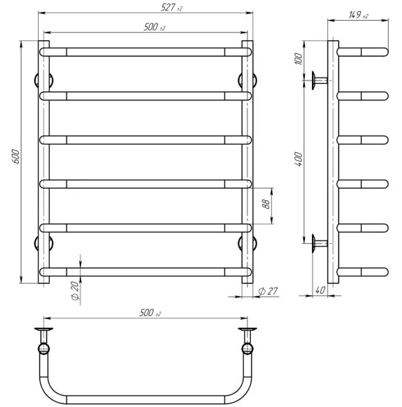 Електрична сушарка для рушників Deffi Стандарт П6 500х600 ліве підключення EF16 білий D.SS.60.50.6.E.W.L.5