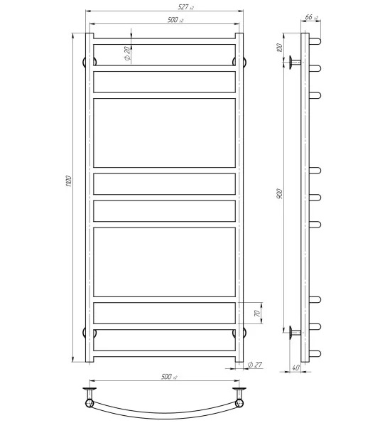 Електрична сушарка для рушників Deffi Класик Еліт П9 500х1100 праве підключення EF16 білий D.KE.110.50.9.E.W.R.5