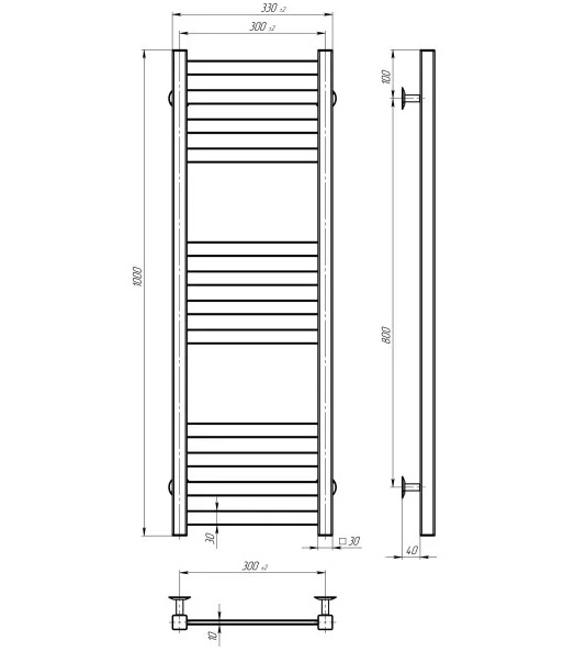 Електрична сушарка для рушників Deffi Avast П12 300х1200 ліве підключення WD04 білий B.AV.120.30.12.E.W.L.4