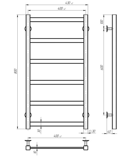 Електрична сушарка для рушників Deffi Avast П6 400х800 праве підключення JD04 чорний B.AV.80.40.6.E.B.R.2